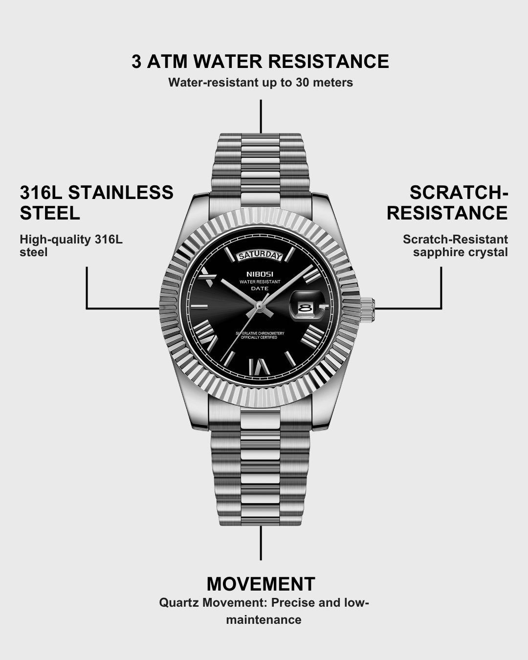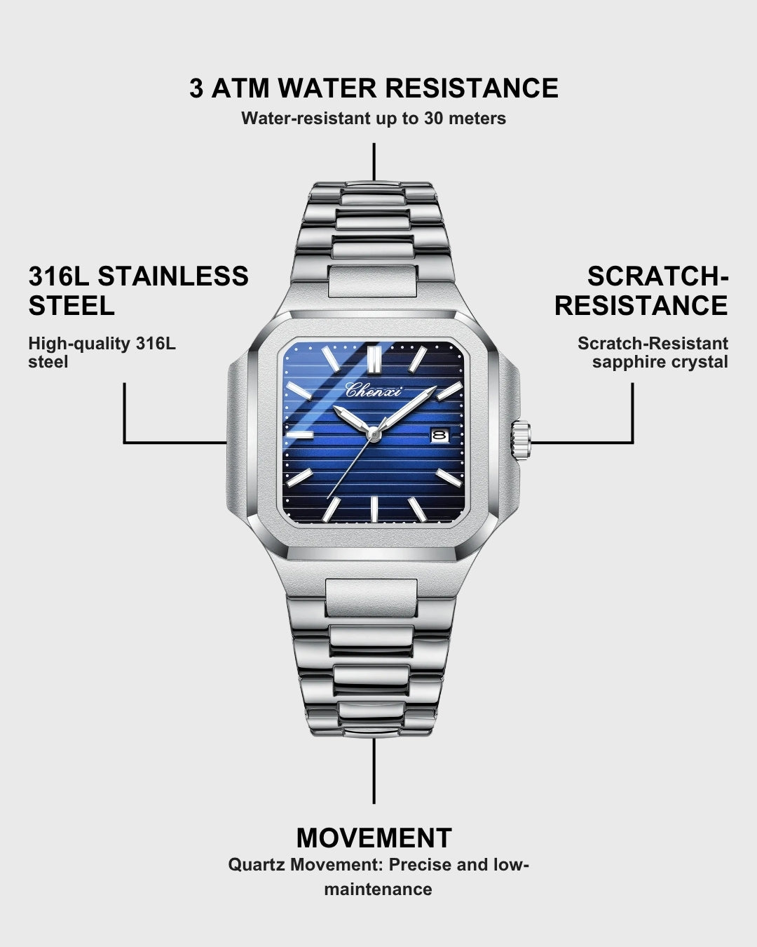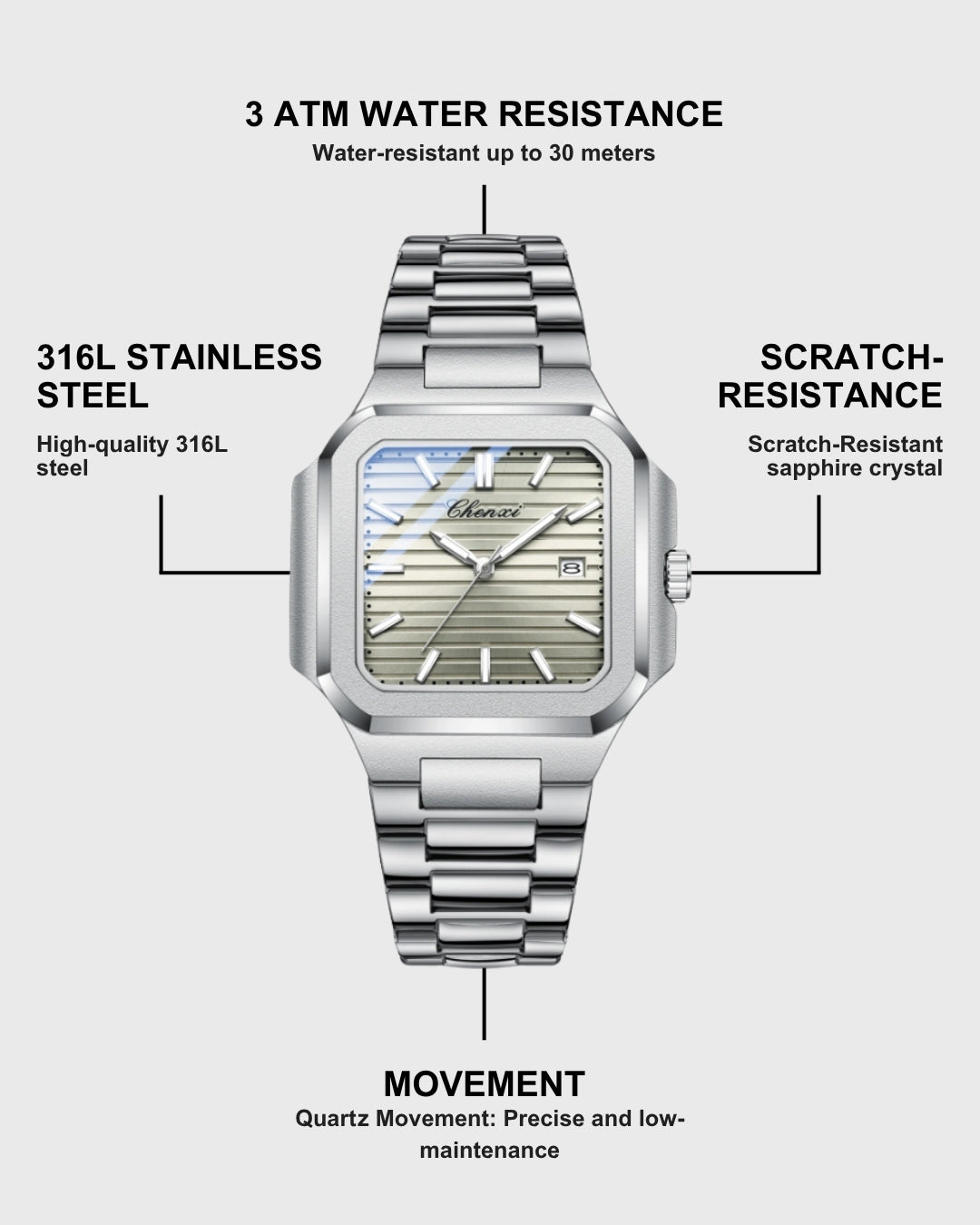 Watches 316L stainless steel, our jewelry waterproof, sweat-resistant and never fades.
