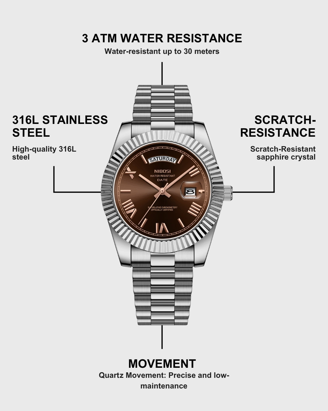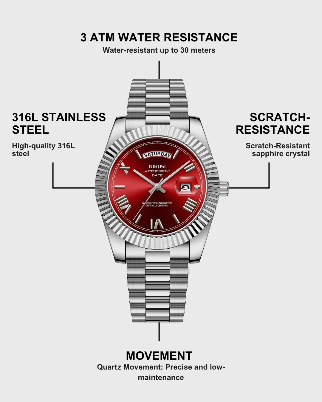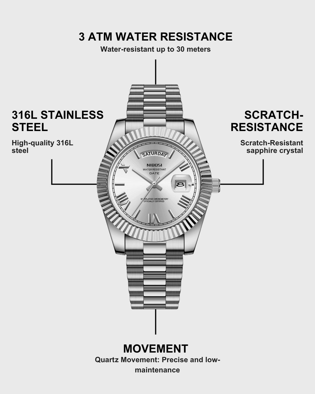 Watches 316L stainless steel, our jewelry waterproof, sweat-resistant and never fades.