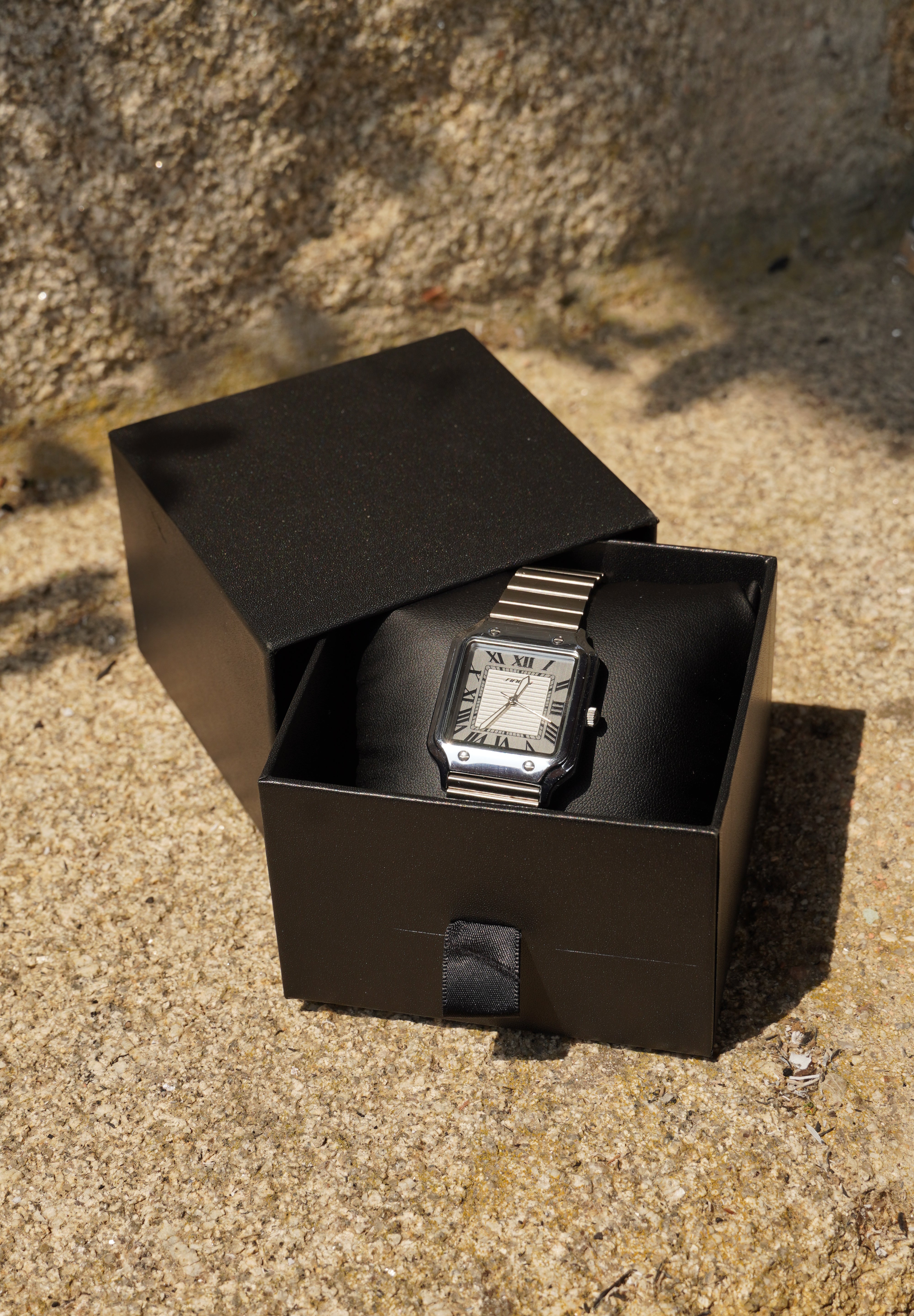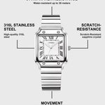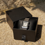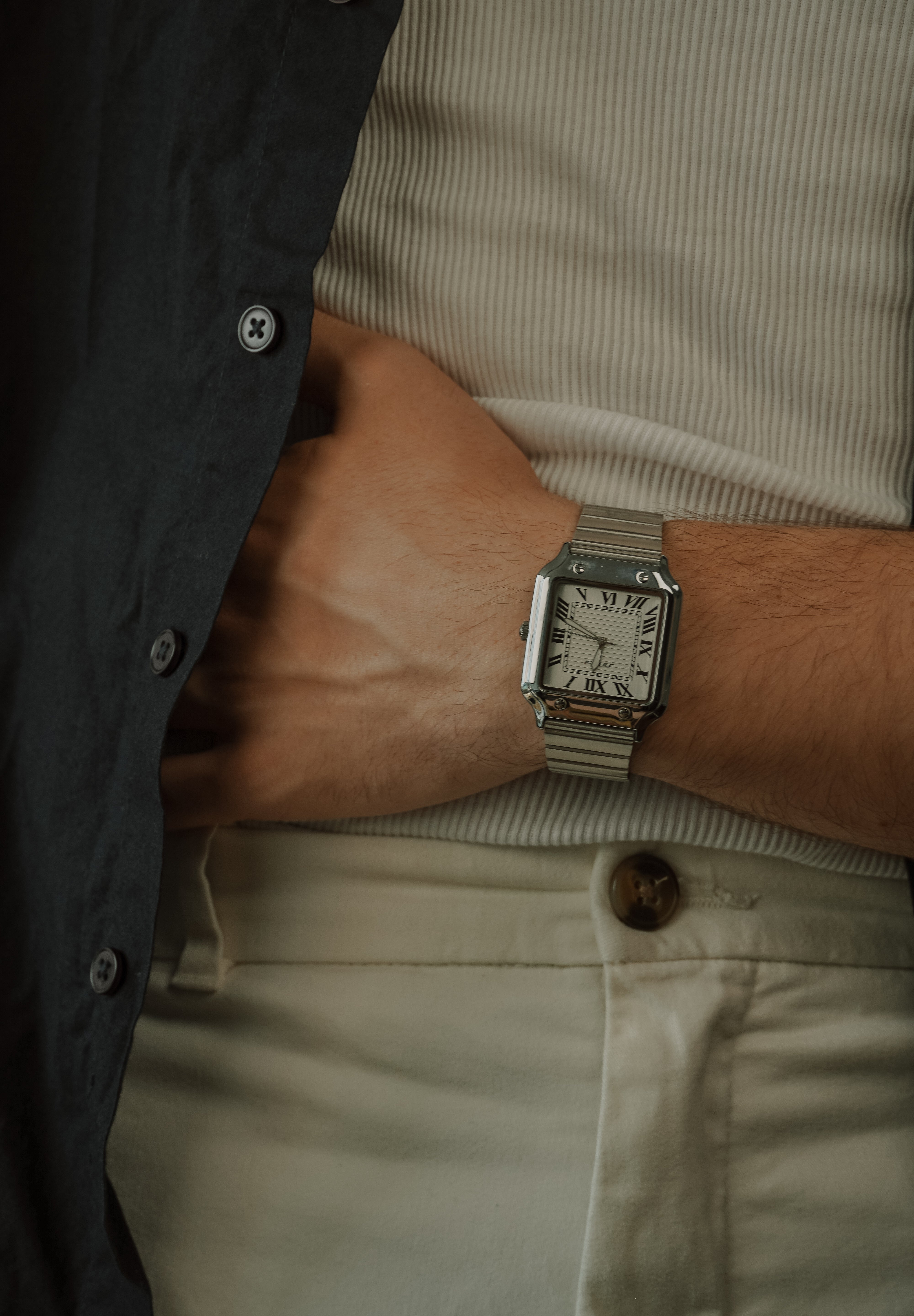 Defined by its sleek square case, this timepiece blends subtle distinction with everyday resilience — built for the man who values refined simplicity and quiet strength.